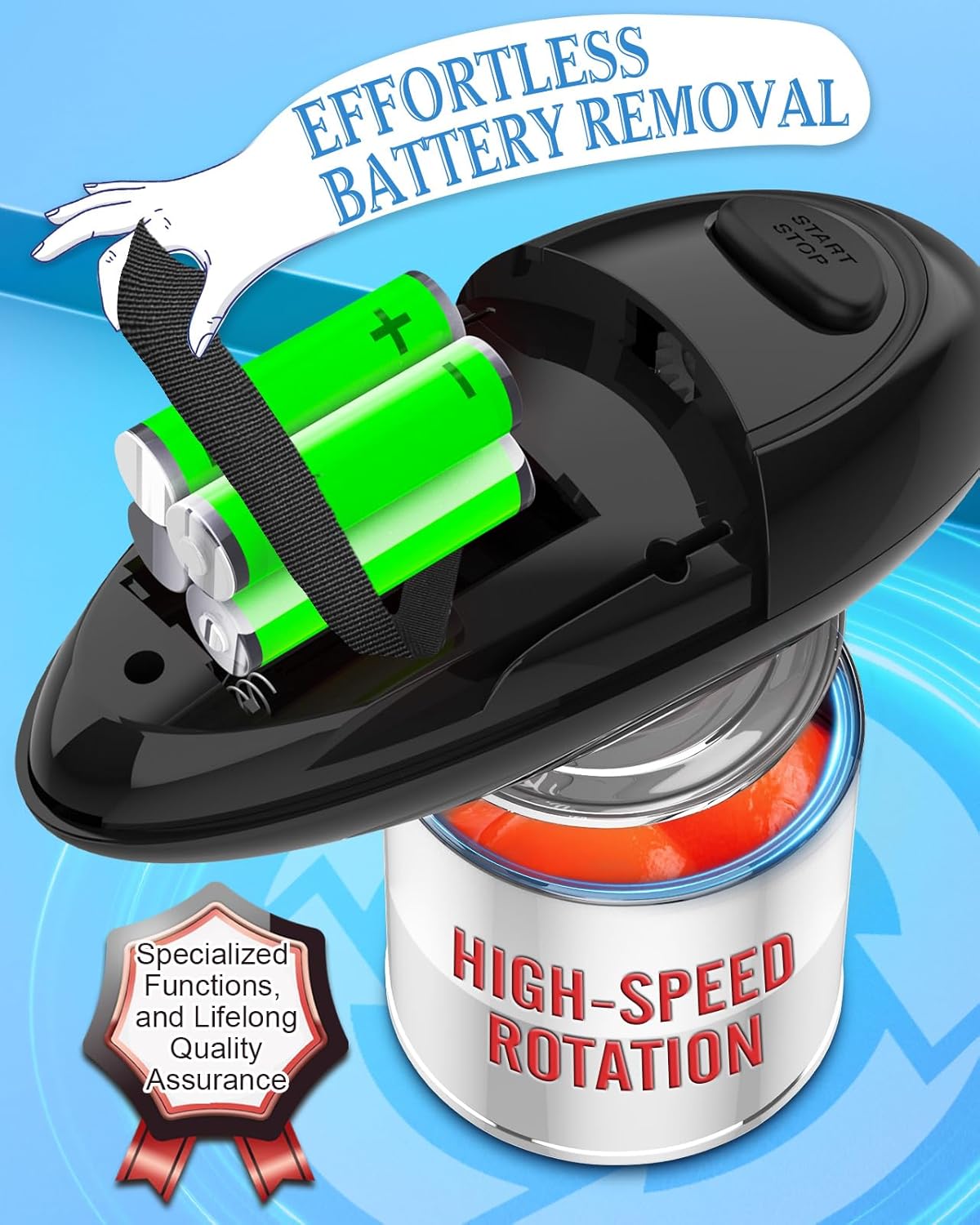 👐 【One-Touch Hands-Free Operation】Effortless & safe electric Can Opener—just press a button, and it does the work! Automatically rotates 360° for smooth cuts, then stops with a second press. Perfect for seniors or anyone with arthritis.